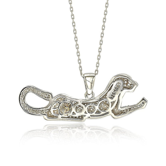 Suzy Levian Sterling Silver White Sapphire and Diamond Accent Prowling Tiger Pendant