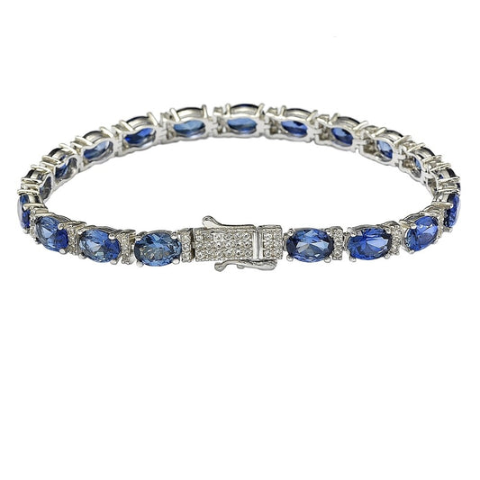 Suzy Levian Sterling Silver Oval-Cut Blue Sapphire & Diamond Accent Tennis Bracelet