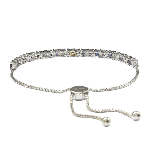 Suzy Levian Sterling Silver Sapphire and Diamond Accent Adjustable Bolo Tennis Bracelet