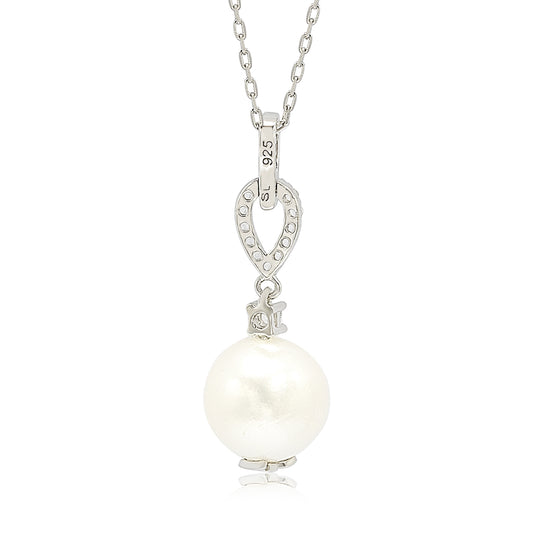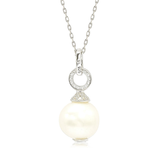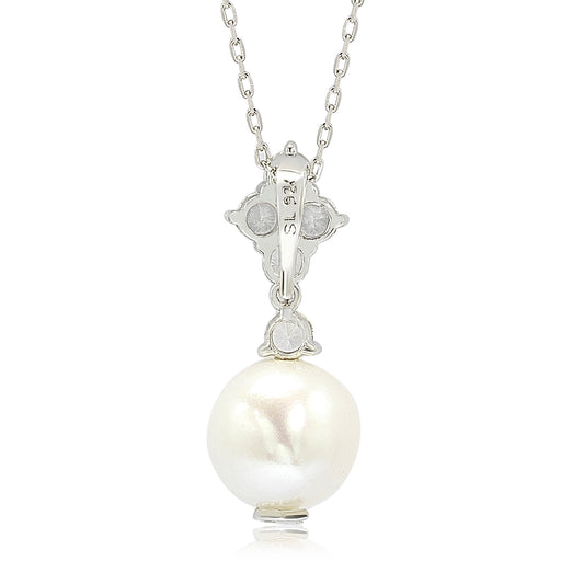 Suzy Levian Sterling Silver Pearl & White Sapphire Dangle Pendant