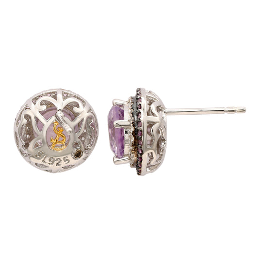 Suzy Levian Sterling Silver Round Cut Purple Amethyst And Sapphire Accent Stud Earrings