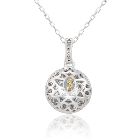 Suzy Levian Sterling Silver Round Cut Blue Topaz And Sapphire Accent Pendant