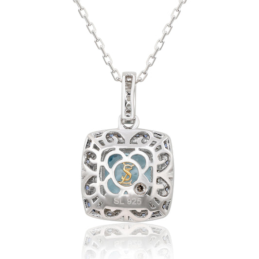 Suzy Levian Sterling Silver Cushion Cut Blue Topaz And Sapphire Accent Pendant