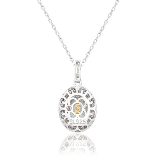 Suzy Levian Sterling Silver Oval Cut Blue Topaz And Sapphire Accent Pendant