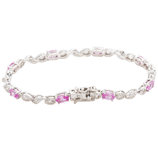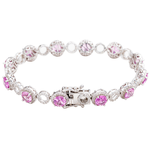 Suzy Levian Sterling Silver Oval-Cut Pink Sapphire And Diamond Accent Tennis Bracelet