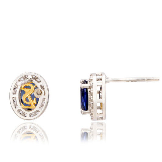 Suzy Levian Sterling Silver Oval Cut Sapphire Halo Stud Earrings