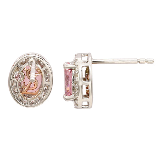 Suzy Levian Sterling Silver Oval Cut Pink Sapphire Halo Stud Earrings