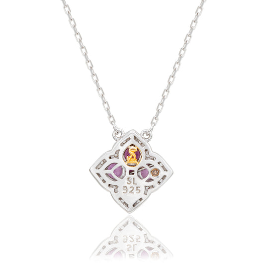 Suzy Levian Sterling Silver Pink Sapphire & Diamond Accent Clover Flower Necklace