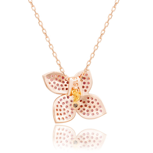 Suzy Levian Pink Sapphire and Diamond Accent in Rose Sterling Silver Abstract Flower Pendant