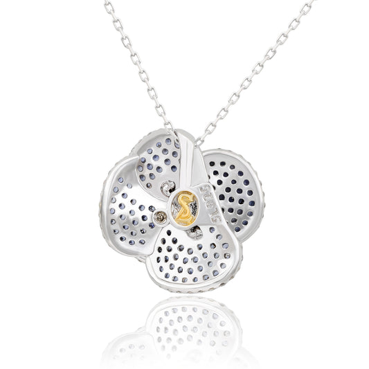 Suzy Levian Sterling Silver Sapphire and Diamond Pave Peony Flower Pendant with Chain