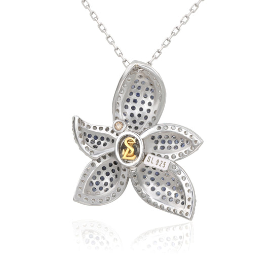 Suzy Levian Sterling Silver Blue Sapphire & Diamond Accent Flower Pendant