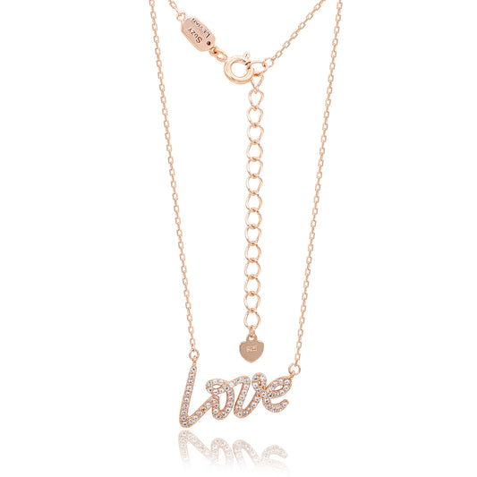 Suzy Levian Rose Sterling Silver White Topaz and Diamond Accent "LOVE" Necklace