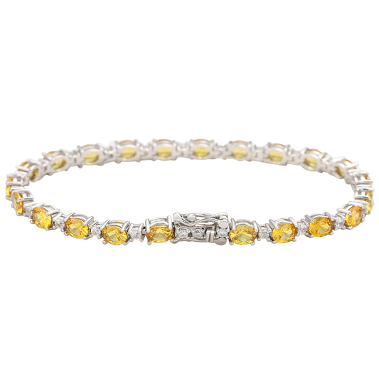 Suzy Levian Sterling Silver Oval-Cut Yellow Sapphire Tennis Bracelet