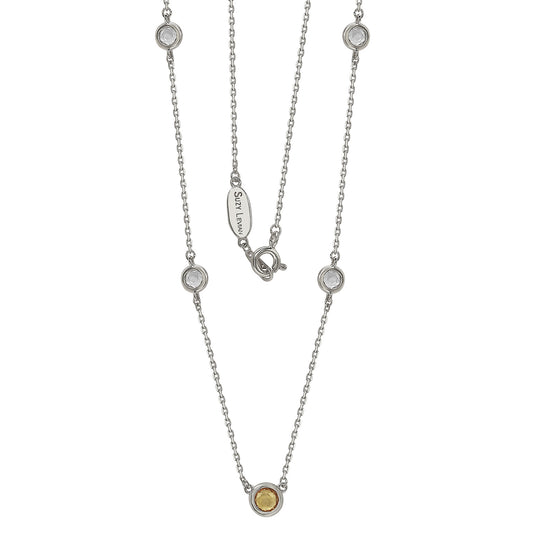 Suzy Levian Yellow Sapphire & Diamond Accent (1.50cttw) White Sterling Silver 5 Stone Station Necklace