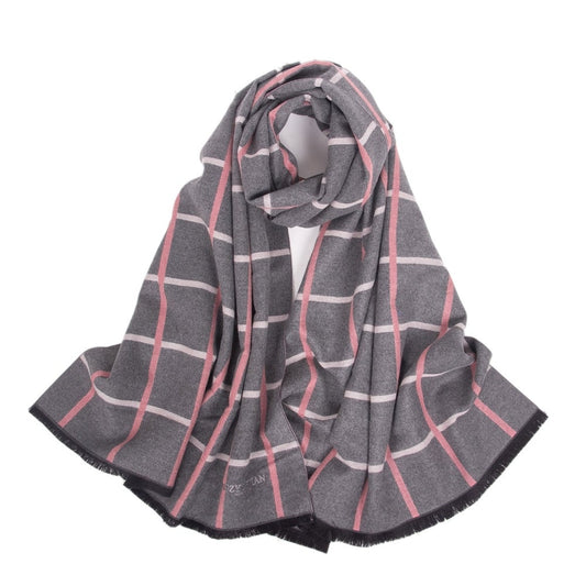 Suzy Levian Women's Grey and Pink Geometric Striped Winter Scarf