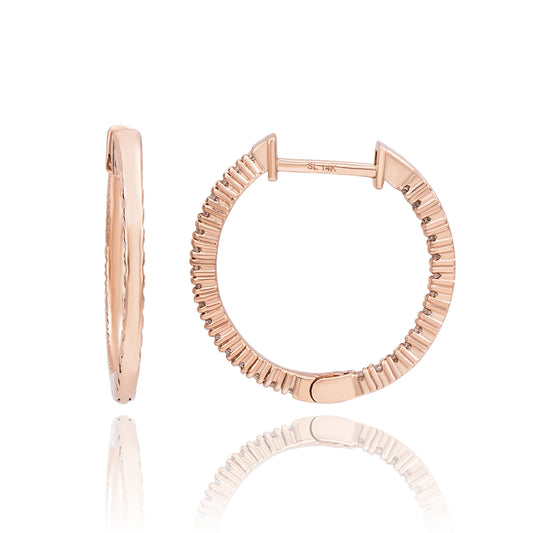 Suzy Levian 14K Rose Gold 3/4cttw TDW Inside Out Diamond Huggie Earrings
