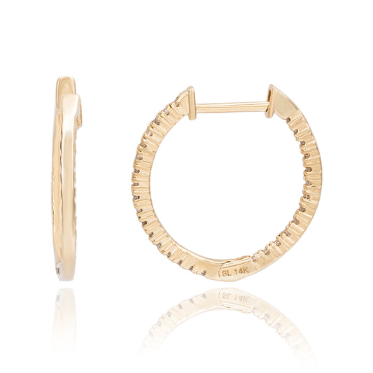 Suzy Levian 14K Yellow Gold 3/4cttw TDW Inside Out Diamond Huggie Earrings