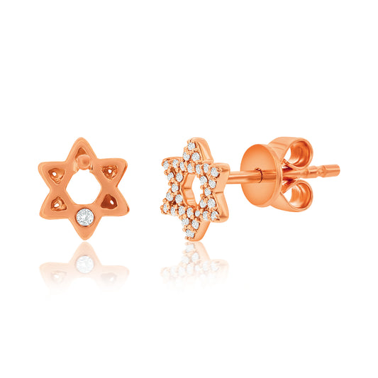 Suzy Levian 14K Rose Gold .13 cttw Diamond Pave Star Of David Stud Earrings