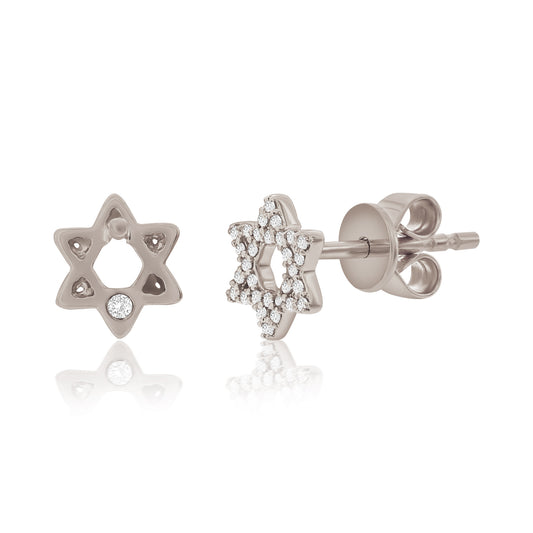 Suzy Levian 14K White Gold .13 cttw Diamond Pave Star Of David Stud Earrings