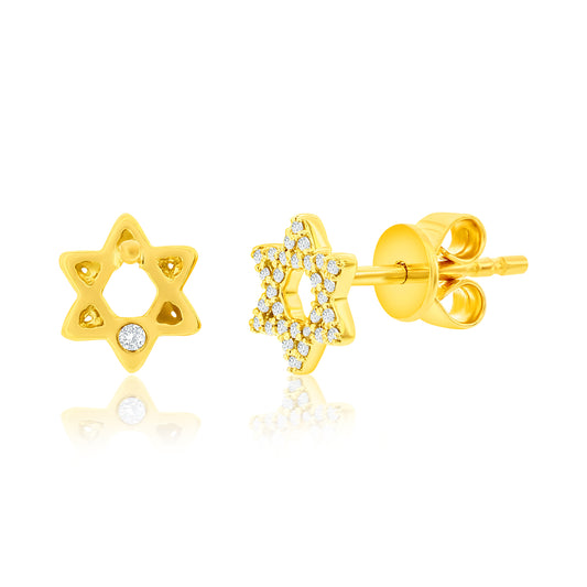Suzy Levian 14K Yellow Gold .13 cttw Diamond Pave Star Of David Stud Earrings