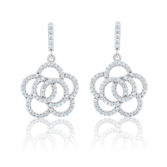 Suzy Levian Sterling Silver White Cubic Zirconia Pave Flower Drop Earrings
