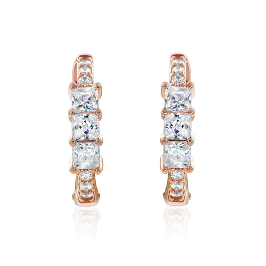 Suzy Levian Rose Sterling Silver & White Cubic Zirconia Pave Princess Cut Huggie Hoop Earrings