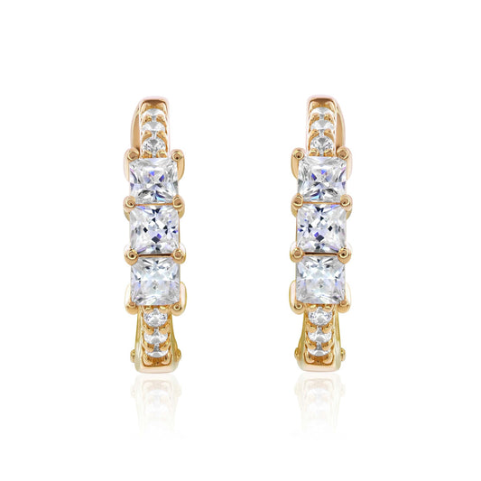 Suzy Levian Yellow Sterling Silver & White Cubic Zirconia Pave Princess Cut Huggie Hoop Earrings