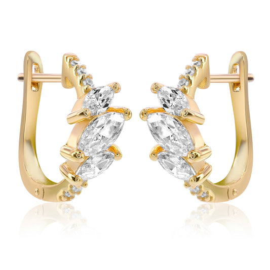 Suzy Levian Yellow Sterling Silver & White Cubic Zirconia Pave Marquise Cut Huggie Hoop Earrings