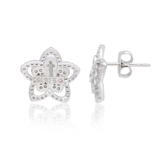Suzy Levian Sterling Silver White Cubic Zirconia Pave Flower Stud Earrings