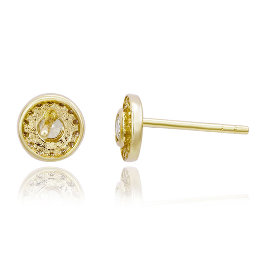 Suzy Levian 14K Yellow Gold Bezel Set Halo 0.33cttw Diamond Stud Earrings