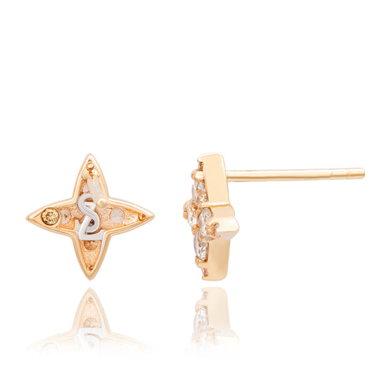 Suzy Levian 14K Yellow Gold .55cttw Diamond Abstract Star Stud Earrings