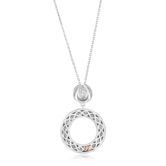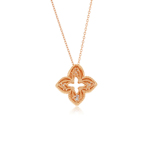 Suzy Levian Rose Sterling Silver White Cubic Zirconia Pave Flower Clover Pendant Necklace