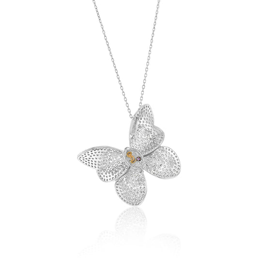 Suzy Levian White Sterling Silver White Cubic Zirconia Pave Butterfly Necklace