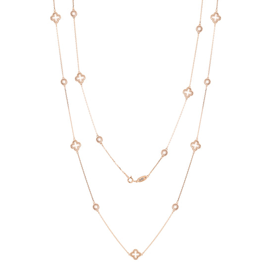 Suzy Levian Rose Sterling Silver White Cubic Zirconia Clover & Circle Station Necklace