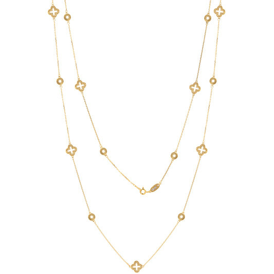 Suzy Levian Yellow Sterling Silver White Cubic Zirconia Clover & Circle Station Necklace