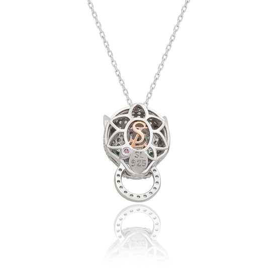 Suzy Levian Sterling Silver White Cubic Zirconia Panther Pendant Necklace