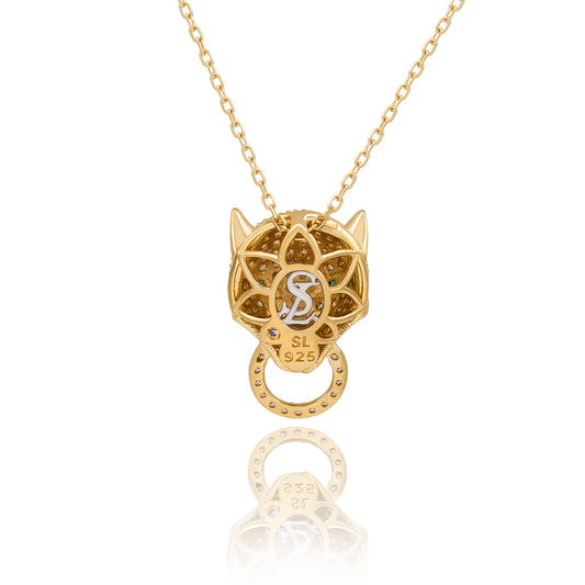 Suzy Levian Yellow Sterling Silver White Cubic Zirconia Panther Pendant Necklace