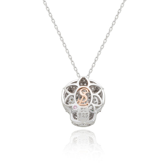 Suzy Levian Rose Sterling Silver White Cubic Zirconia Large Pave Flower Pendant