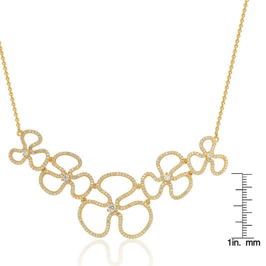 Suzy Levian Golden Sterling Silver Cubic Zirconia Floral Thin Necklace