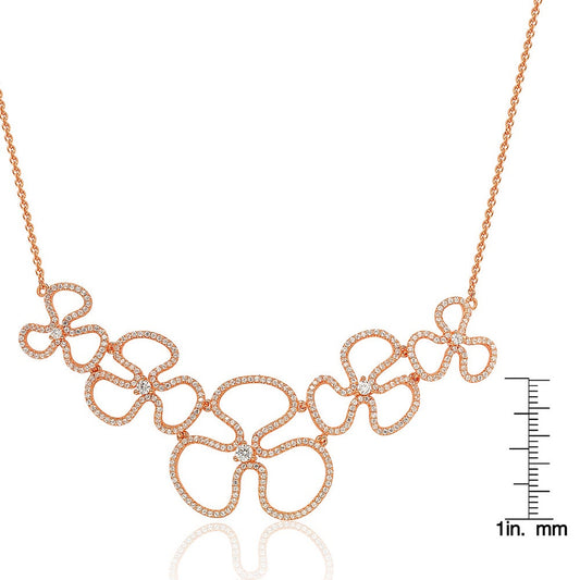 Suzy Levian Rosed Sterling Silver Cubic Zirconia Floral Thin Necklace