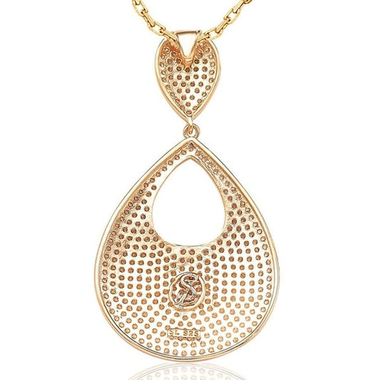 Suzy Levian Gold tone Sterling Silver Elongated Pear-cut Cubic Zirconia Necklace