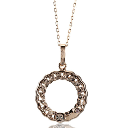 Suzy Levian Rosed Sterling Silver Brown Cubic Zirconia Interlocked Circle Pendant