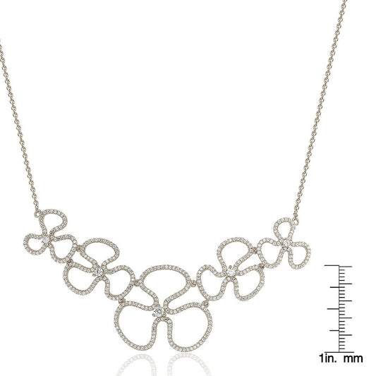 Suzy Levian Sterling Silver Cubic Zirconia Floral Thin Necklace