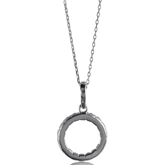 Suzy Levian Cubic Zirconia Rose Sterling Silver Circle Loop Pendant Necklace