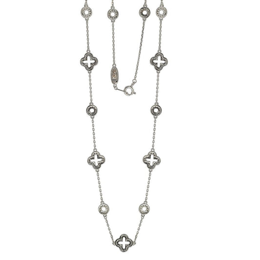 Suzy Levian Sterling Silver White Cubic Zirconia Clover & Circle Station Necklace