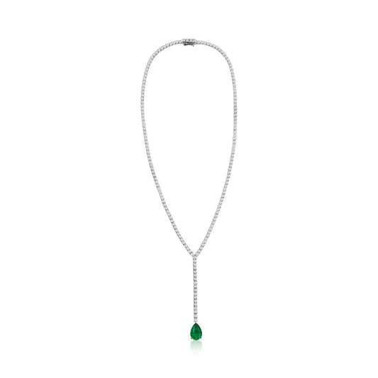 Suzy Levian Sterling Silver Gala Green Pear-Cut & White Cubic Zirconia Lariat Tennis Necklace