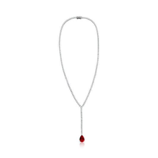 Suzy Levian Sterling Silver Gala Red Pear-Cut & White Cubic Zirconia Lariat Tennis Necklace