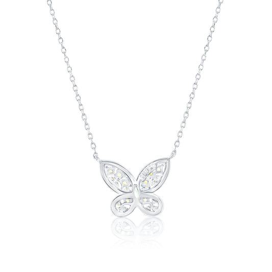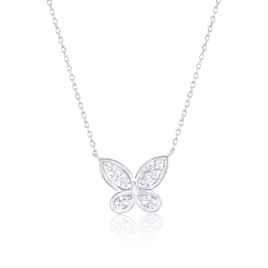 Suzy Levian Sterling Silver White Cubic Zirconia Pave Butterfly Cluster Necklace