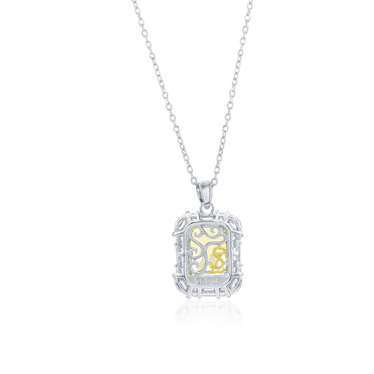 Suzy Levian Sterling Silver Gala Firework Emerald Cut Yellow & White Cubic Zirconia Multi-Cut Pendant Necklace