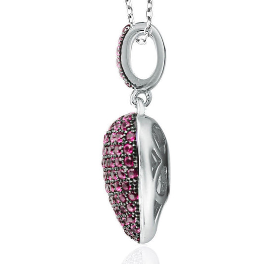 Suzy Levian Pink Cubic Zirconia Blackened Sterling Silver Pave Heart Pendant